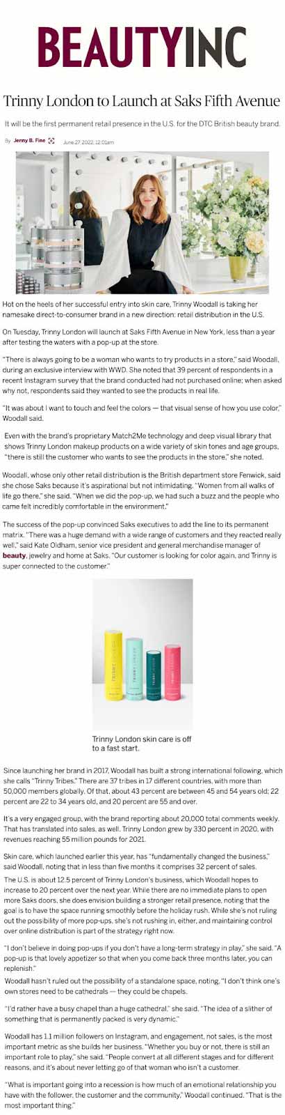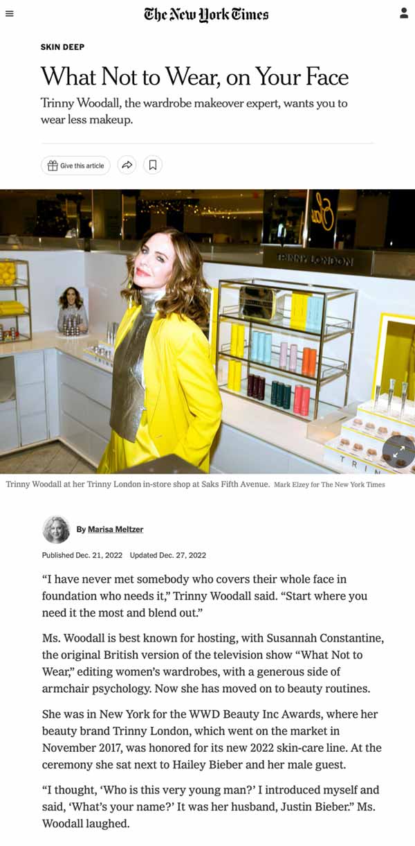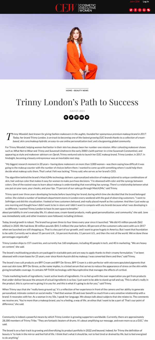 Trinny London partnered with Studio Beauty to build brand awareness and tell the Trinny London story in the US market for both brand and trailblazing founder.