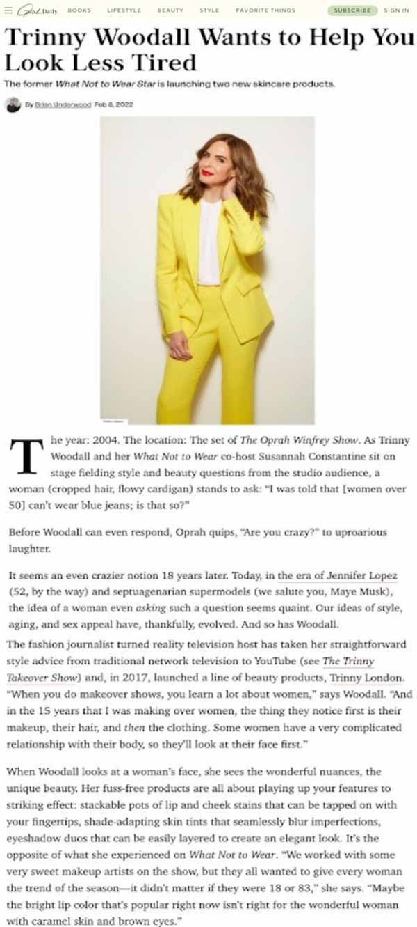 Brand owned features and in-depth profiles of Trinny Woodall delivered thought leadership and in-depth storytelling.